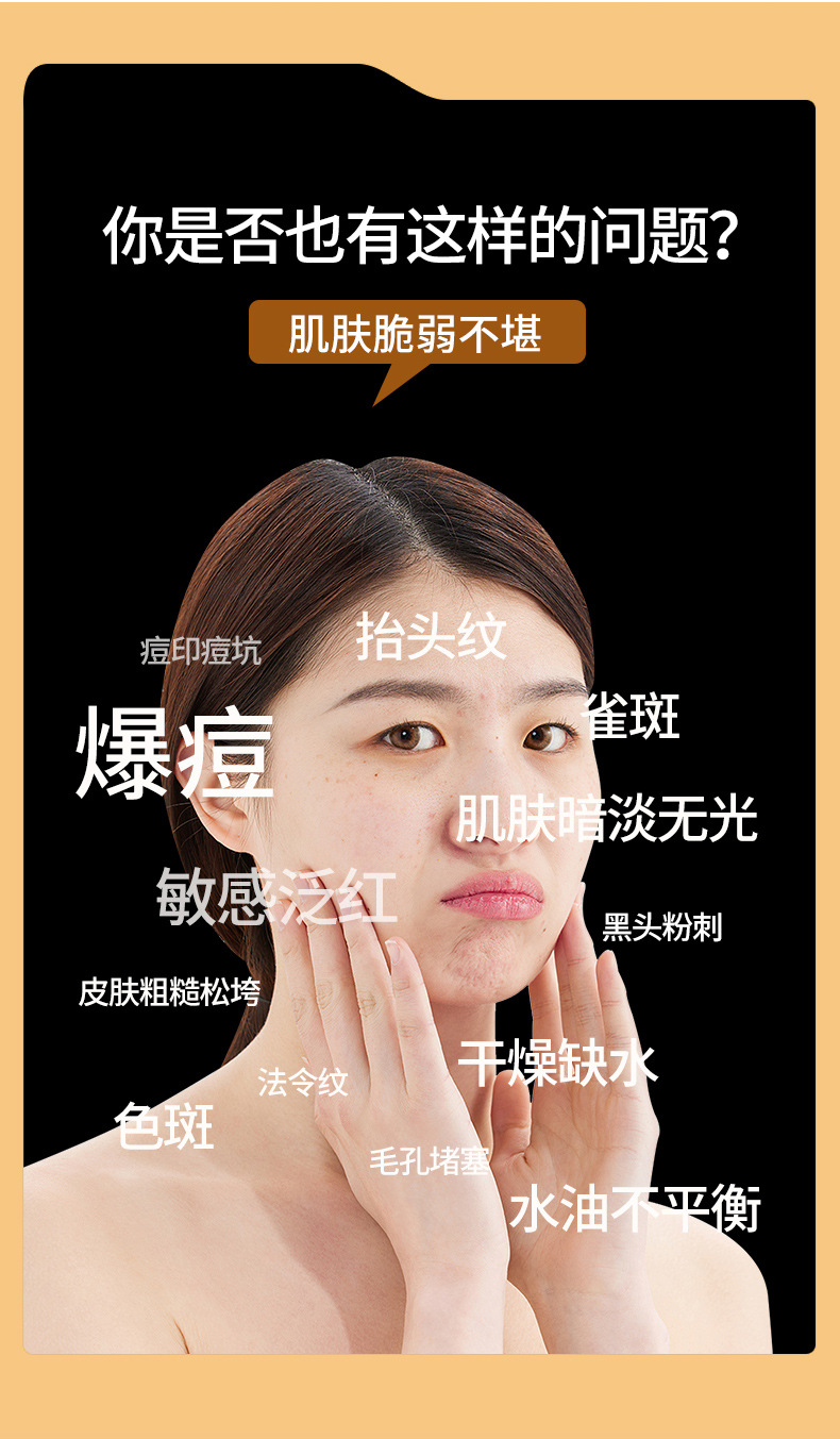 7、针对暗沉、松弛、细纹与痘肌问题进行综合护理,使肤色更亮、轮廓更清晰。