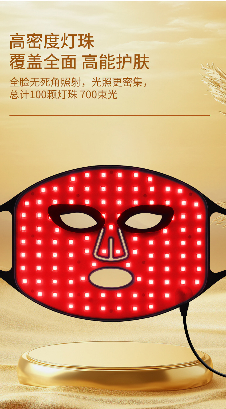3、内置100颗高品质光珠,输出约700束光能,照射更集中更均匀,让每一寸肌肤都能充分吸收光疗能量。