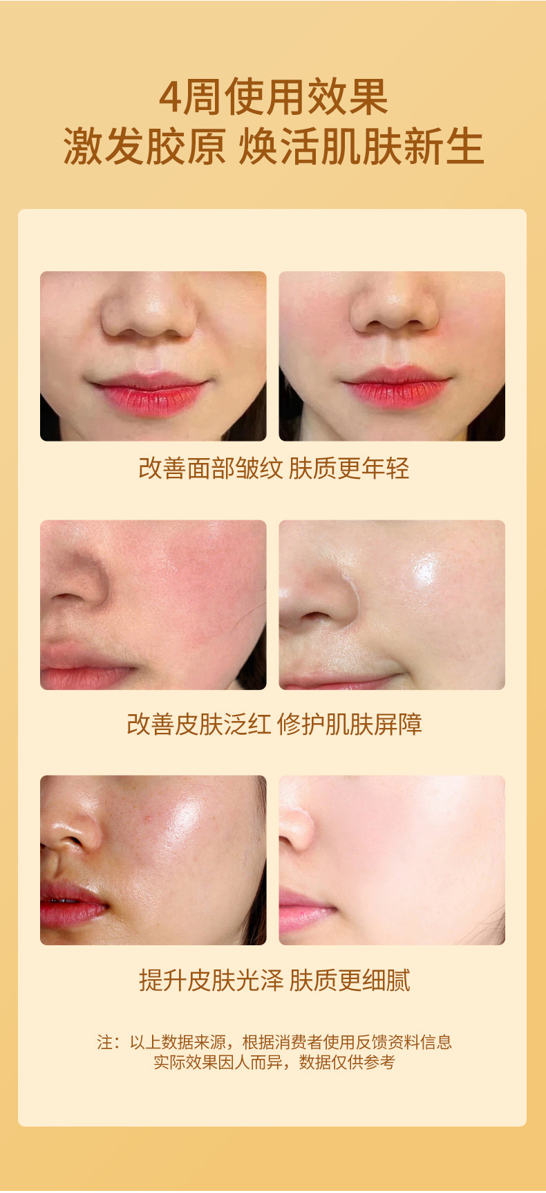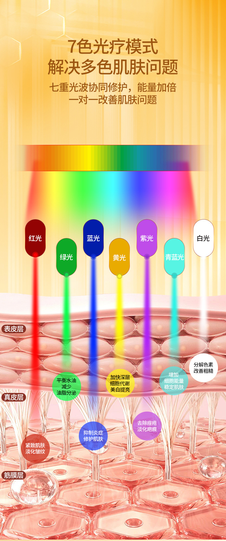 2、七重光能协同作用,可同时实现淡化细纹、紧致轮廓、提亮肤色与舒缓痘肌,多维度改善肤质。