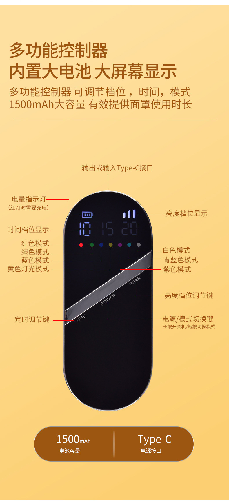6、多功能智能控制器,可轻松切换光疗模式与能量强度,操作简单直观。