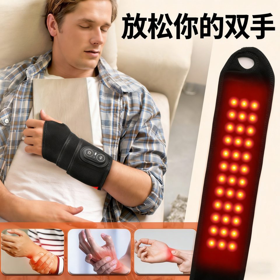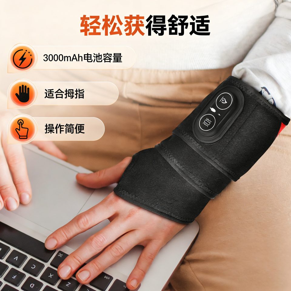 1、采用红光理疗结合加热与震动多重护理方式,温和作用于手腕区域,帮助缓解紧绷与疲劳感。