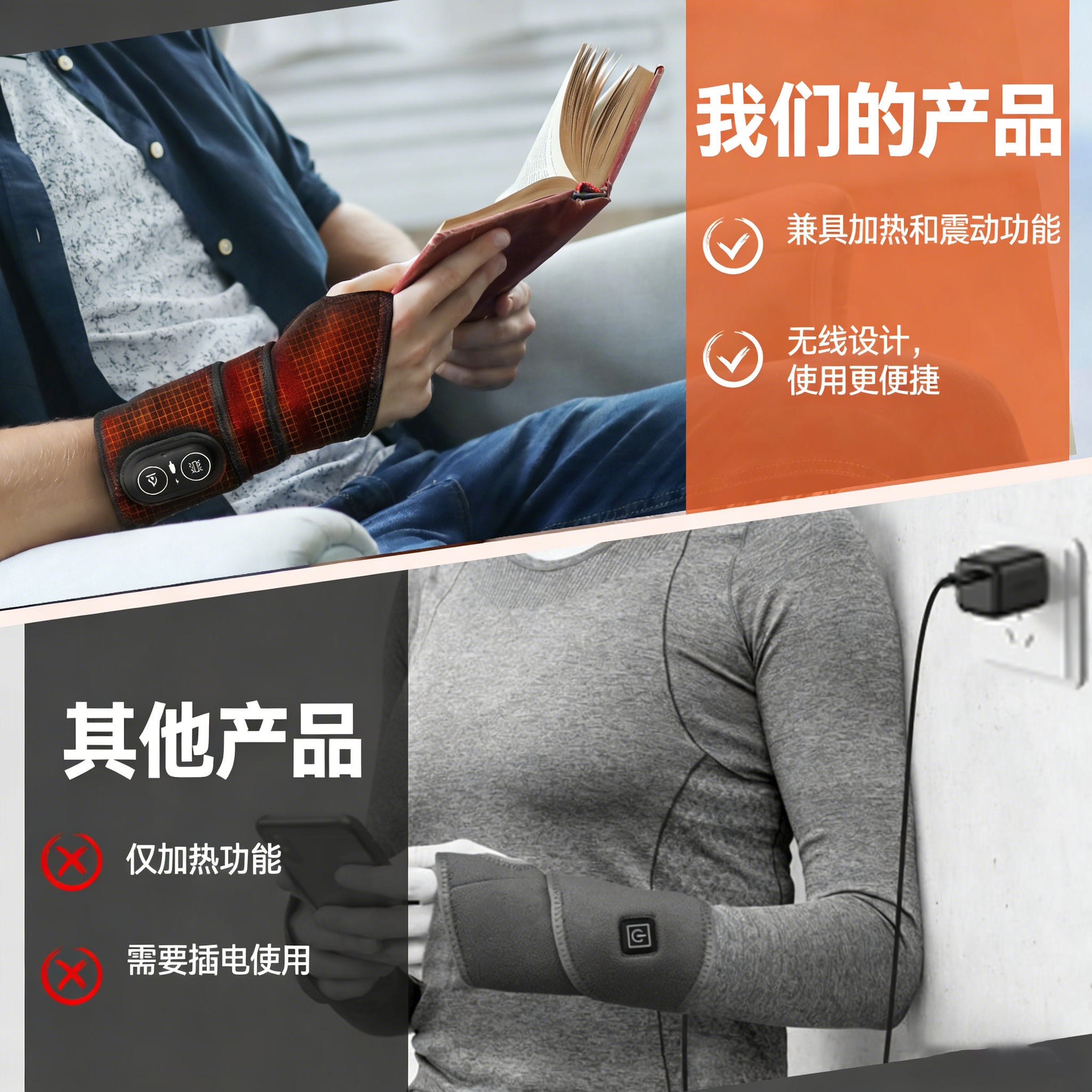 4、大面积深度加热设计,覆盖手腕核心区域,护理更全面更高效。