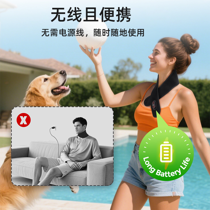 2、内置36颗红外LED灯珠,光能均匀覆盖颈部,深入肌肉层,辅助促进局部血液循环。