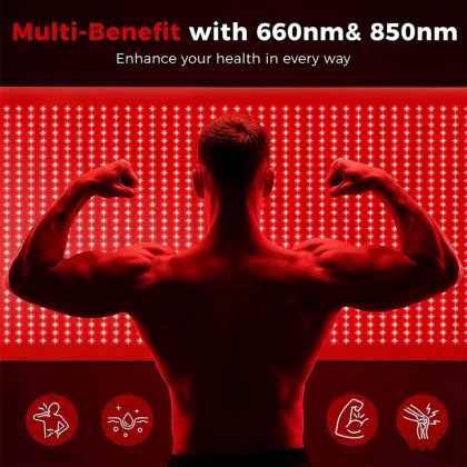 1、采用红光与近红外双波段光源组合设计。 2、大面积高功率光照输出,适用于全身范围使用。 3、插电即用设计,操作简单直观。