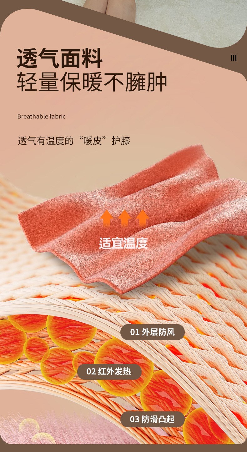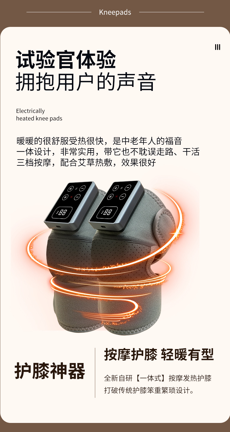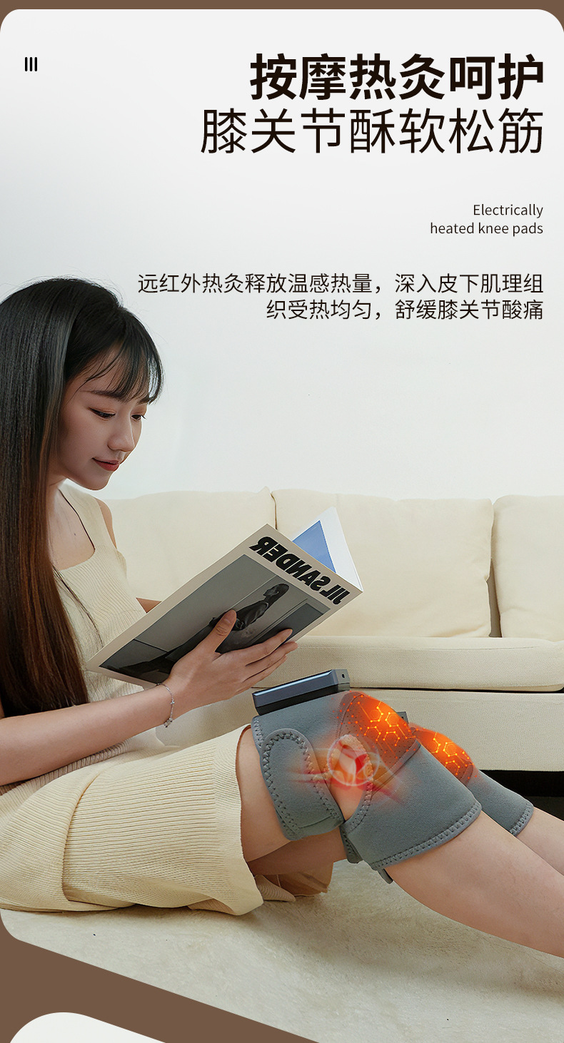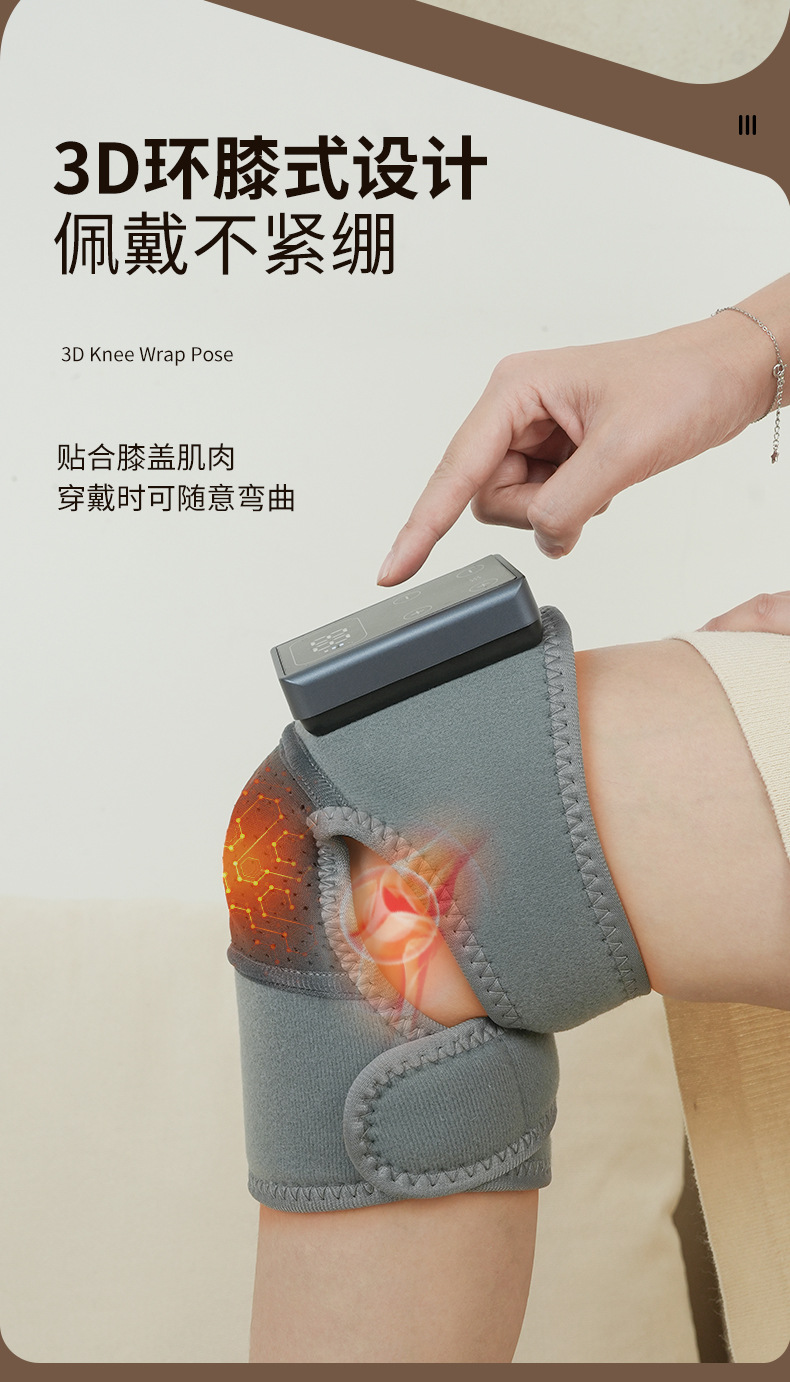1、采用气压揉捏式按摩技术,通过循环充放气方式模拟人工按压,有效缓解腿部酸胀与疲劳感。 2、恒温暖膝功能搭配三档热温度调节,热感均匀柔和。 3、立体循环挤压设计,科学分区护理腿部肌群,促进腿部放松与舒缓。
