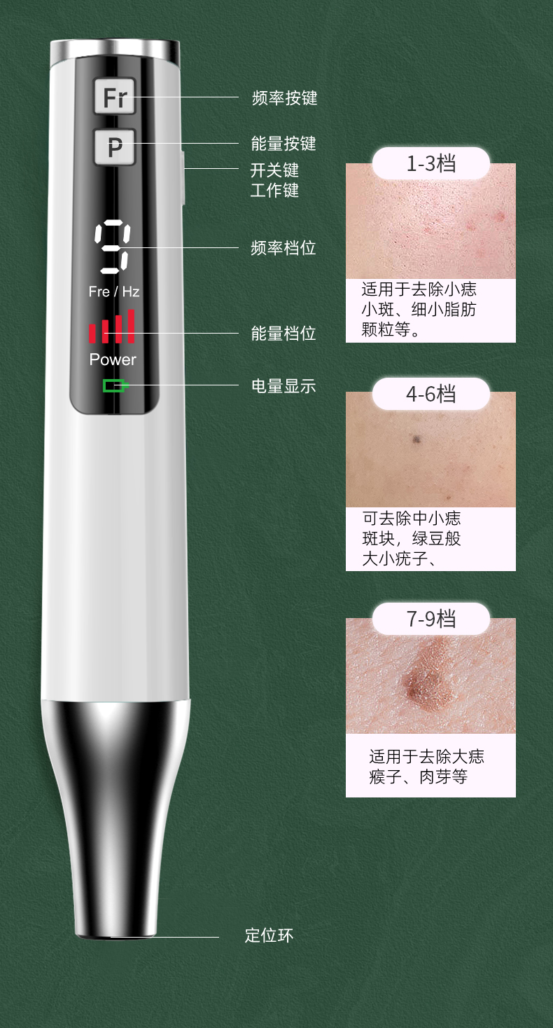 1、9档激光强度可调,满足不同肤质和使用需求。