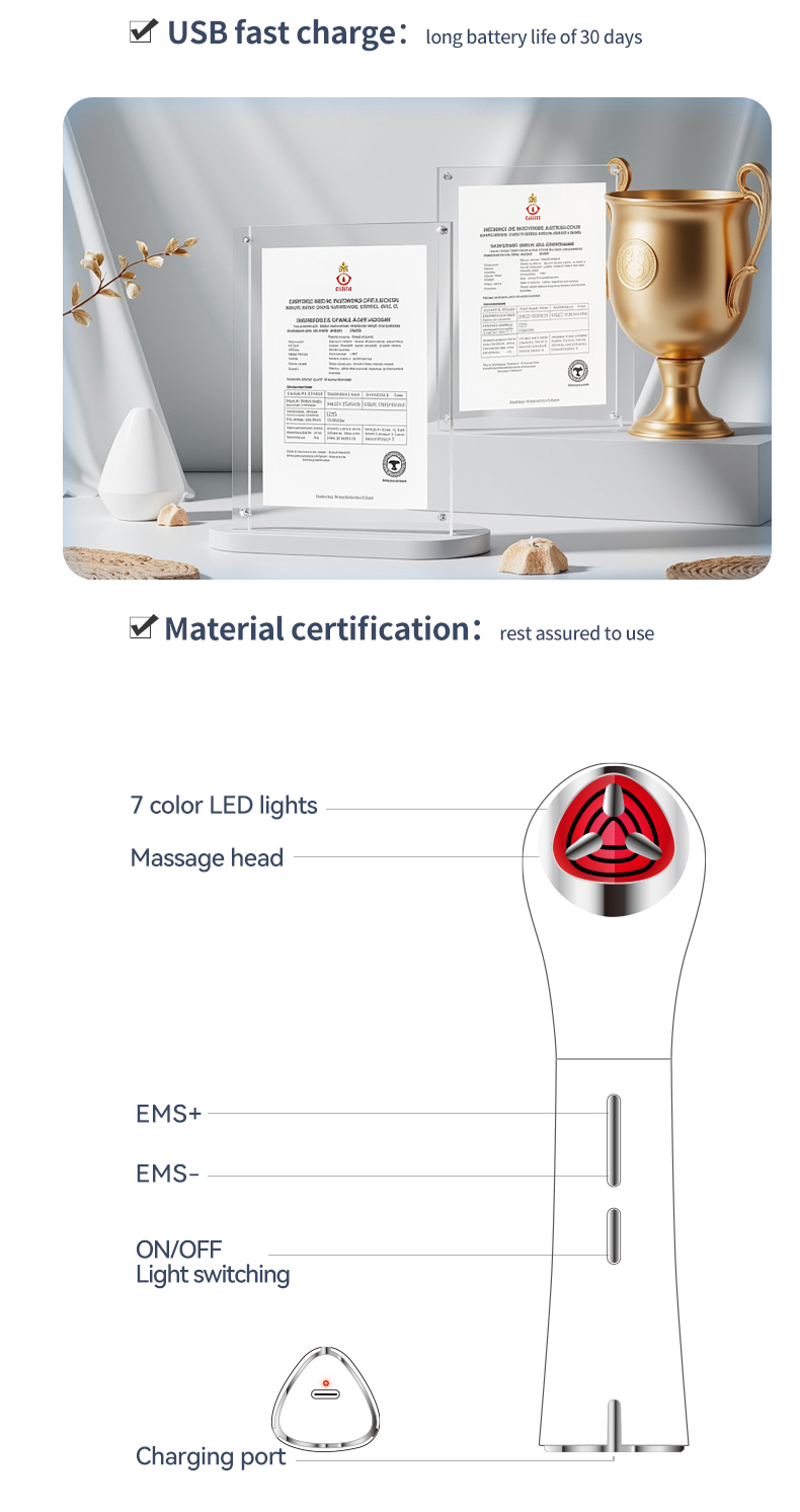 2、采用电磁微电流技术,通过温和电脉冲作用于肌肤表层,帮助促进护肤成分吸收。