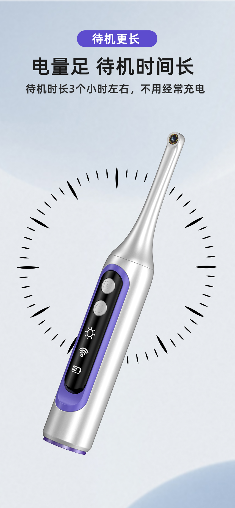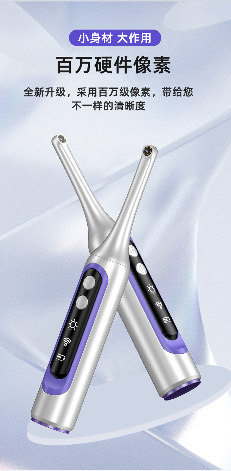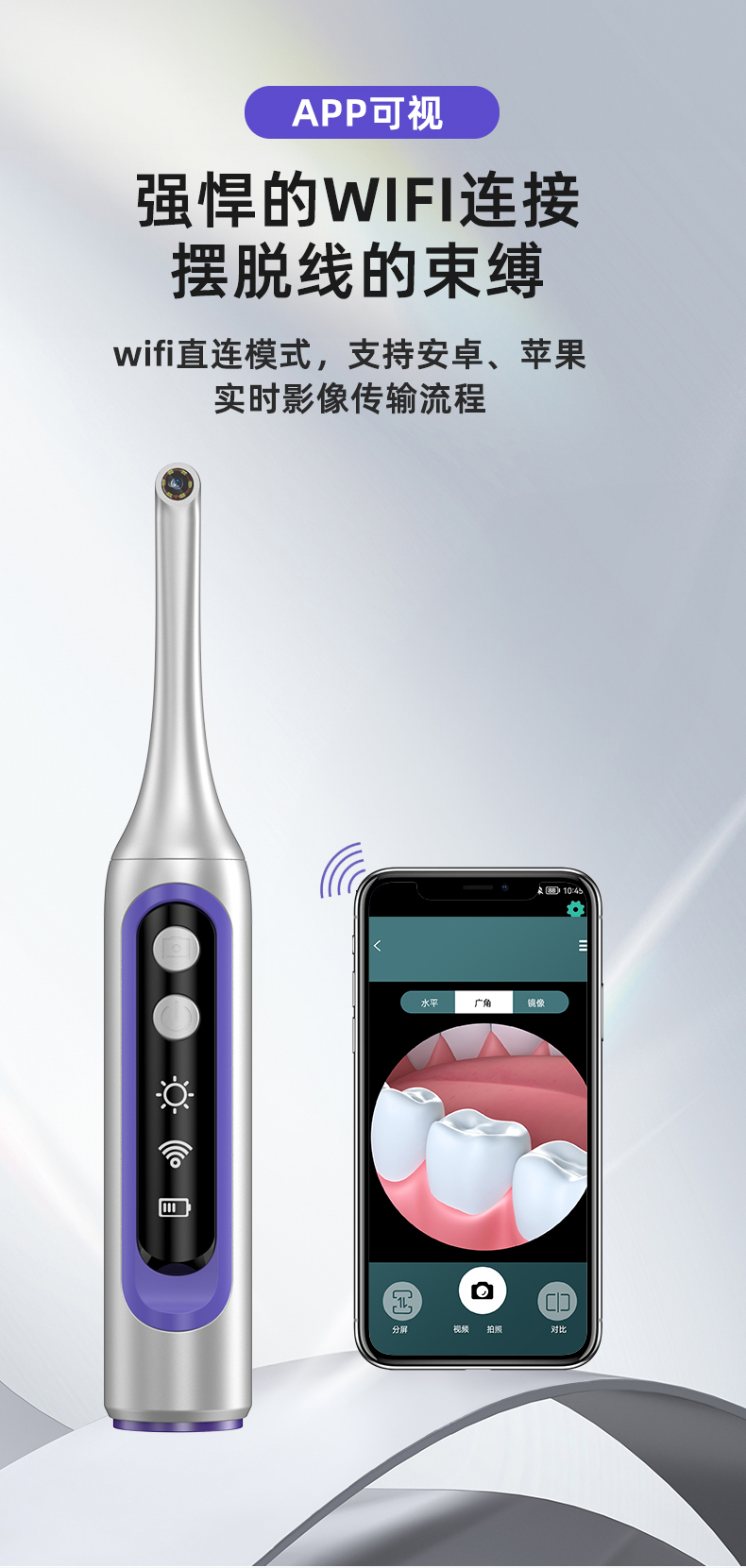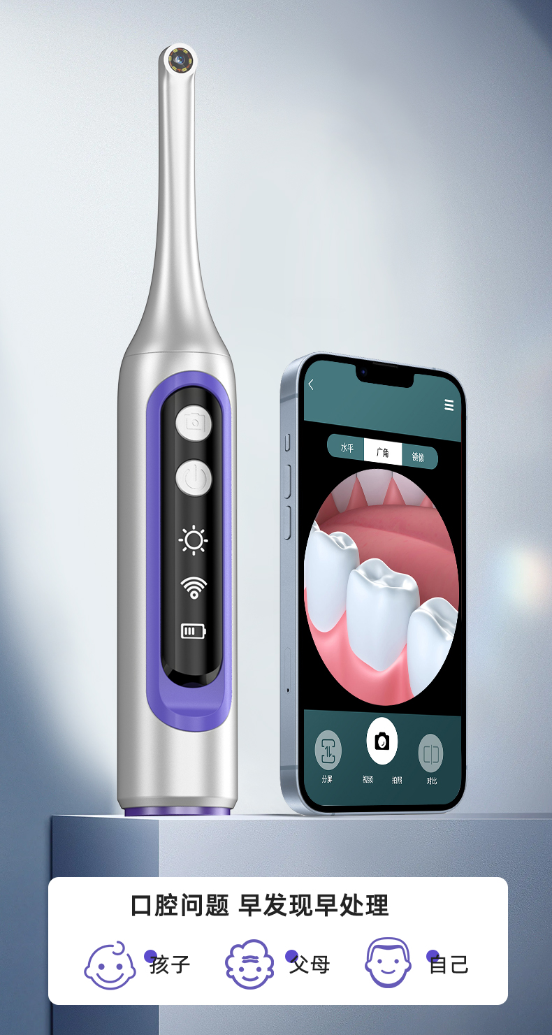 1、内置百万级高清摄像头,搭配高清传输技术,可清晰呈现牙齿、牙龈及口腔细节,让问题一目了然。