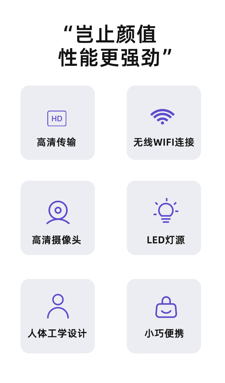 2、支持无线WiFi连接,可与手机APP实时同步画面,摆脱数据线束缚,查看与操作更加自由便捷。