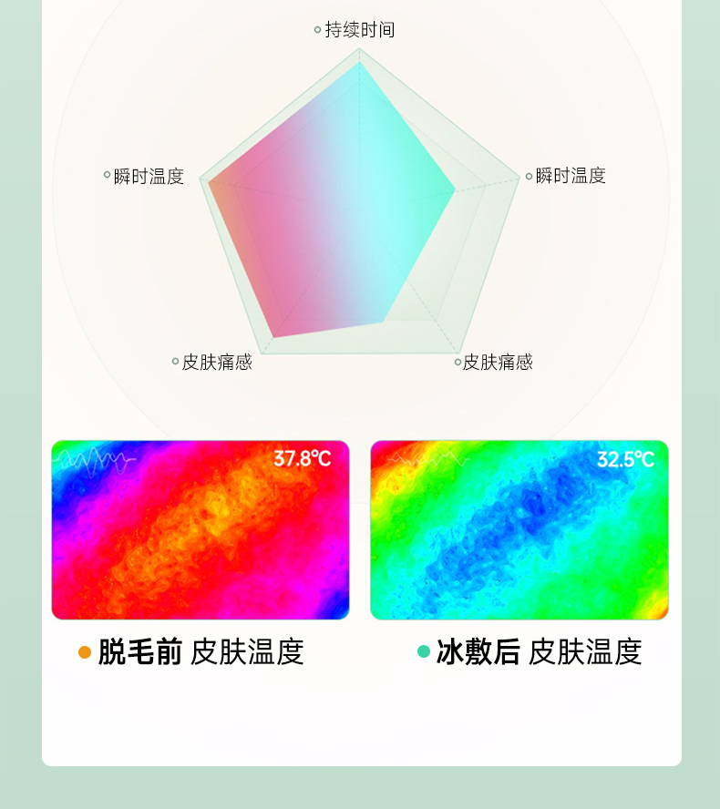 8、全程冷却保护,使用过程中体感舒适,明显降低疼痛感。