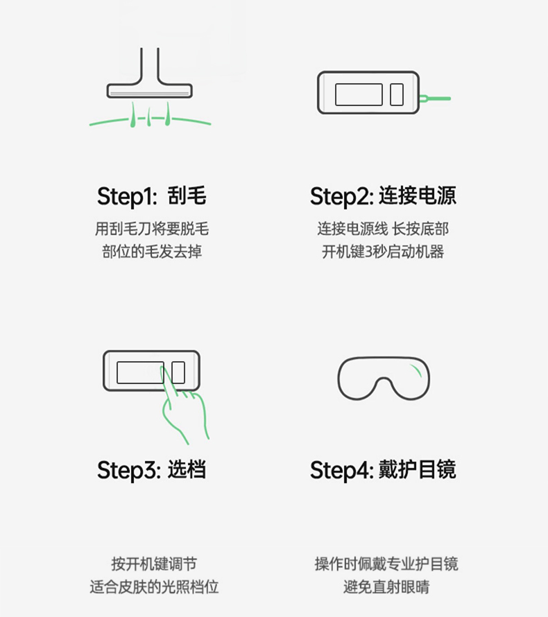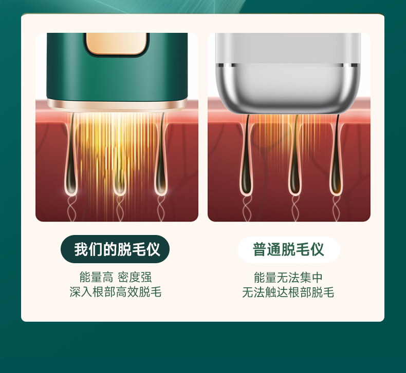 3、510–1200 nm 波长范围,可深入真皮层及皮下组织,对不同深度毛发均有作用。