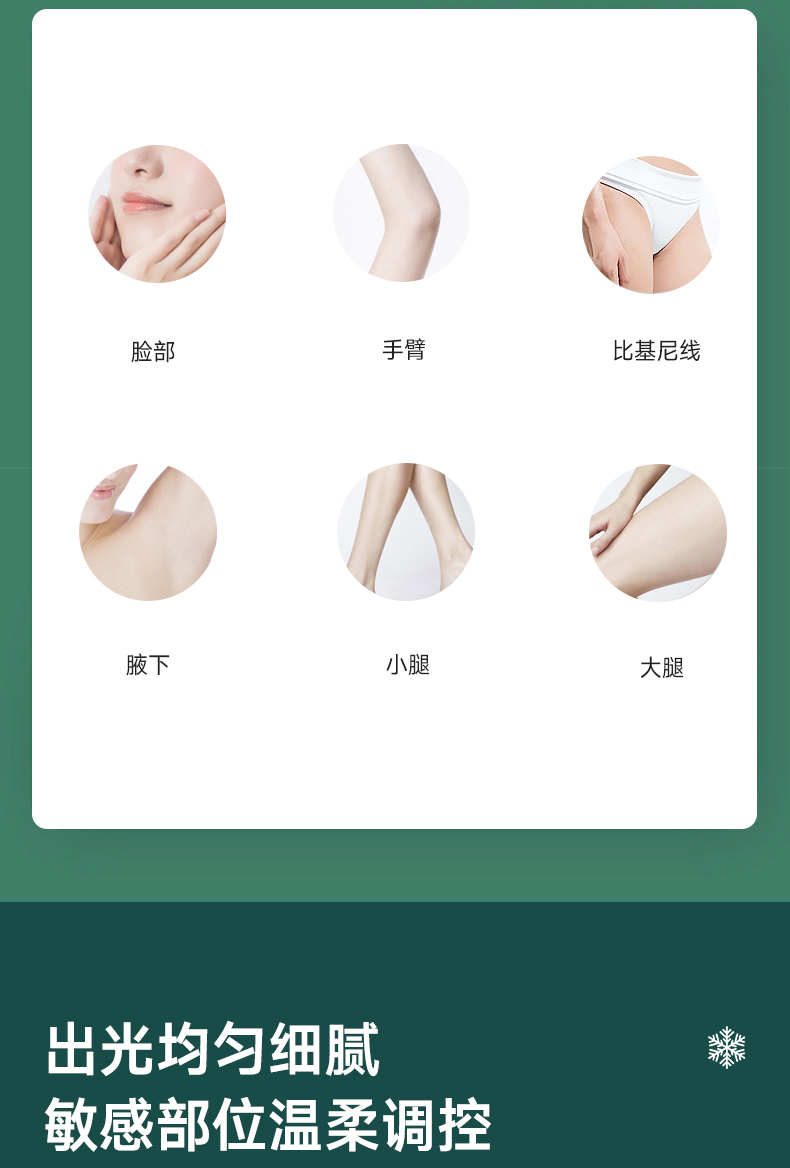 2、大光斑出光,覆盖面积更大,适合身体多部位快速脱毛。