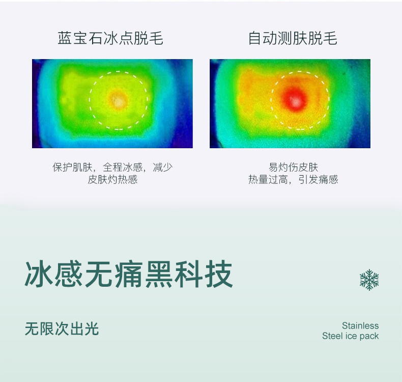 2、全程冷却保护,使用过程中体感舒适,明显降低疼痛感与不适感。