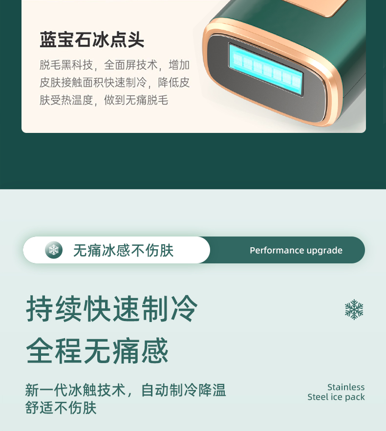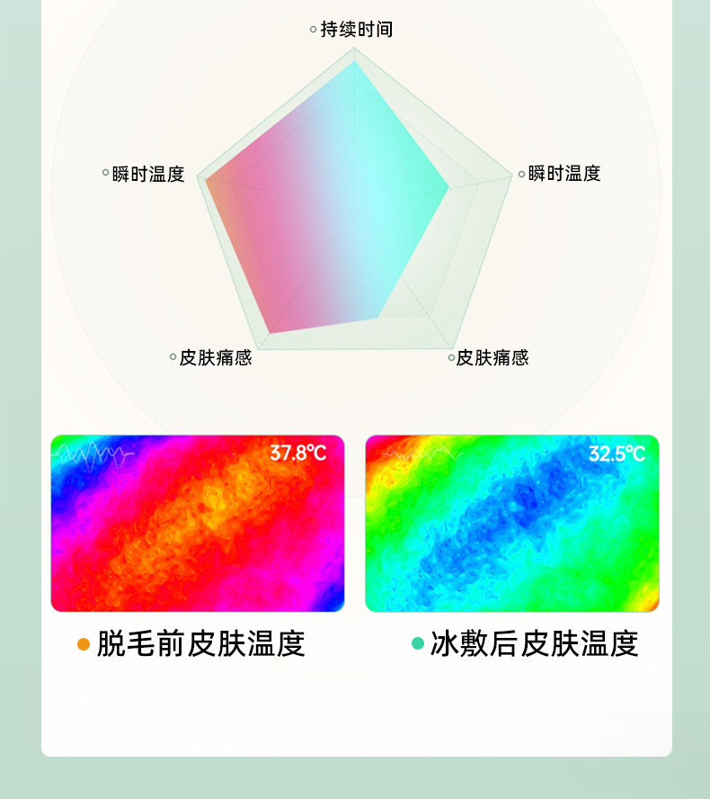 2、全程冷却保护,使用过程中体感舒适,明显降低疼痛感与不适感。