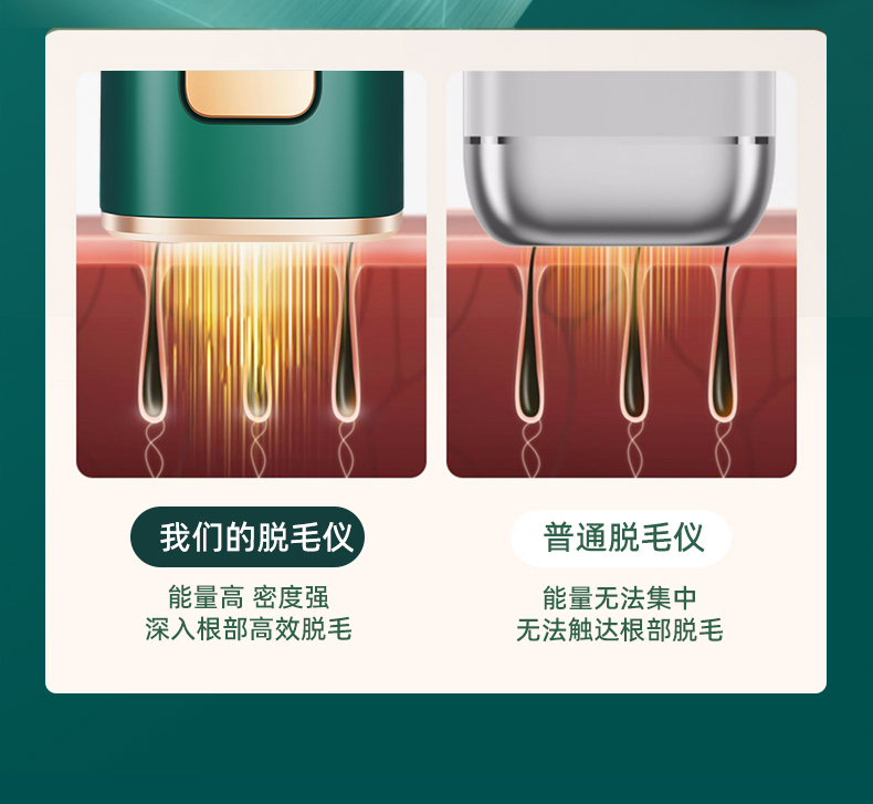 5、510–1200 nm 波长范围,可深入真皮层及皮下组织,对不同深度毛发均有作用。