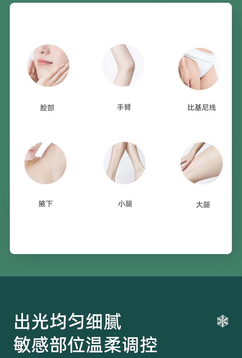 4、大光斑出光,覆盖面积更大,适合身体多部位快速脱毛。