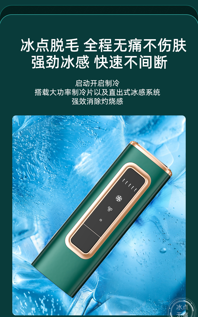 3、内置冷冻点制冷系统,工作过程中可将皮肤表面温度降低至约 4℃,实现全程冷却保护。