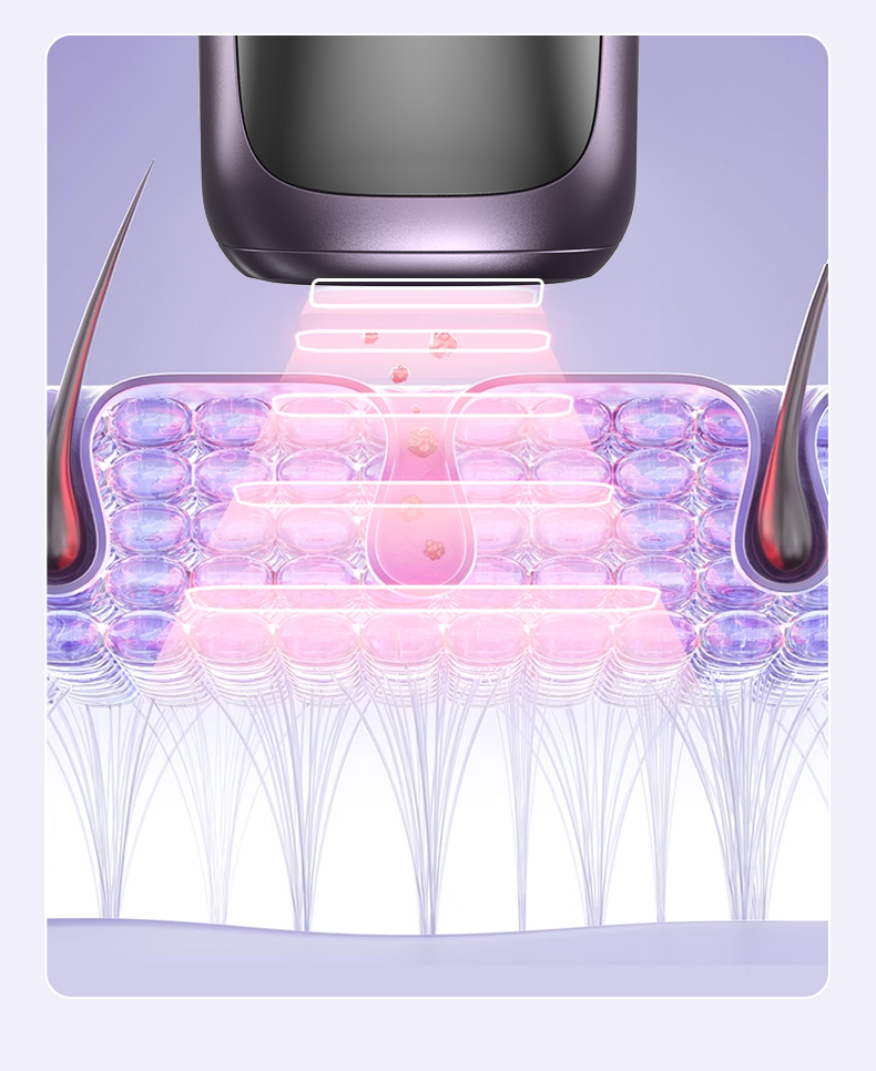 4、510–1200nm 宽波段光源,适应不同毛发状态和多种脱毛部位。
