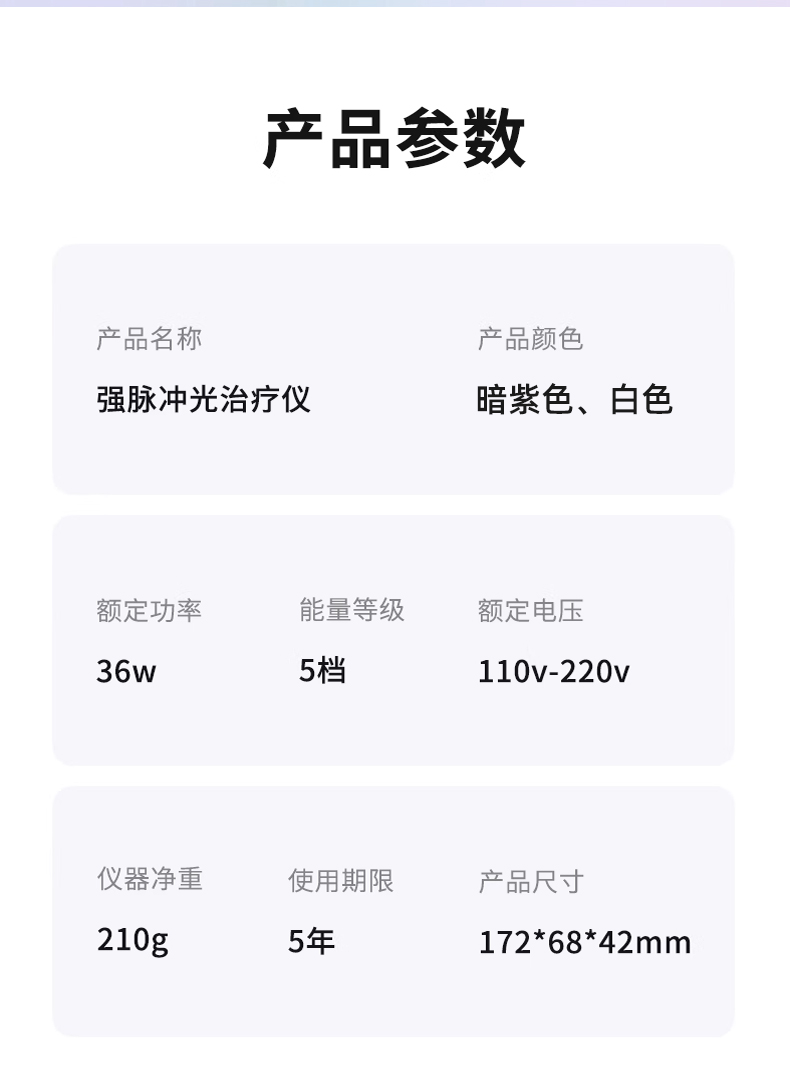 6、脉冲时间最长可达 400ms,适用于多种肤色,使用范围更广。