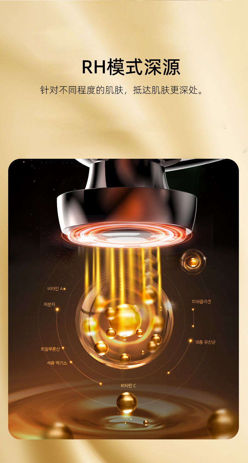 4、RH深源护理模式,通过稳定微电流输出,有助于唤醒肌肤活力,改善肤感状态。