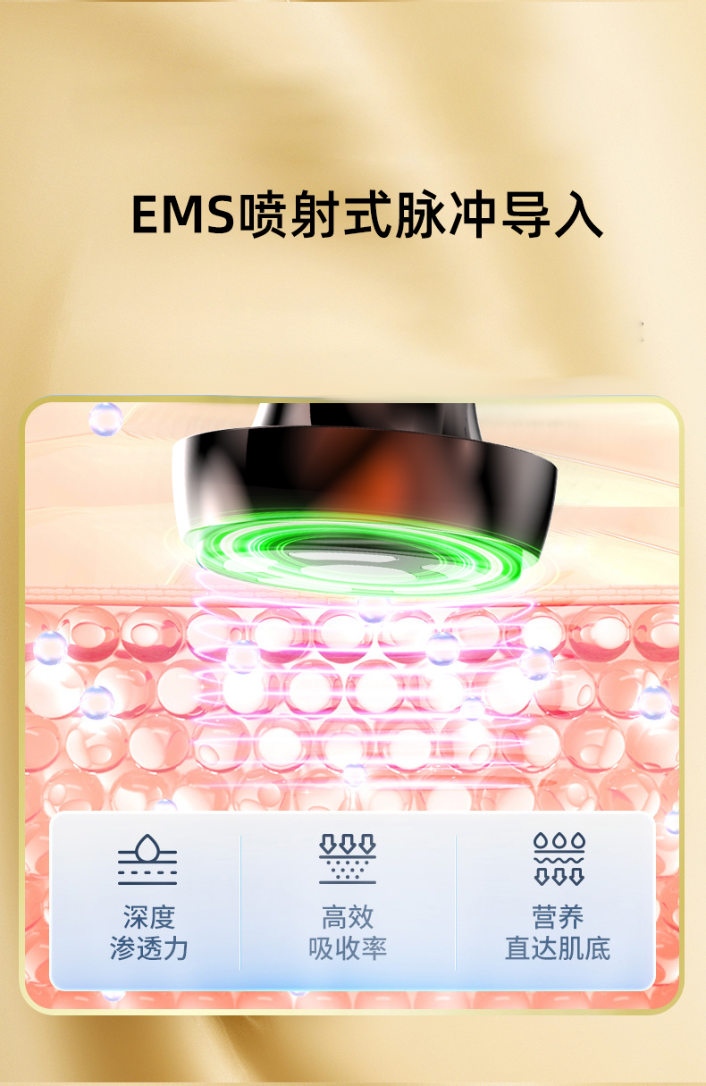 1、采用EMS微电流导入技术,通过温和电脉冲作用于肌肤表层,帮助提升护肤成分的吸收效率。