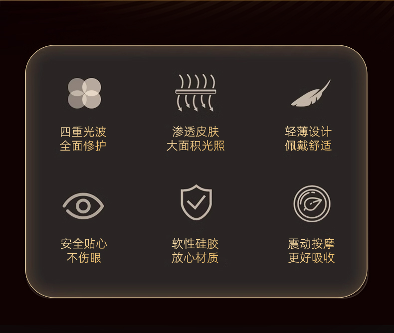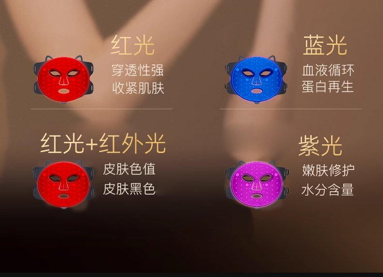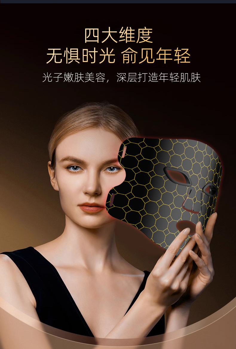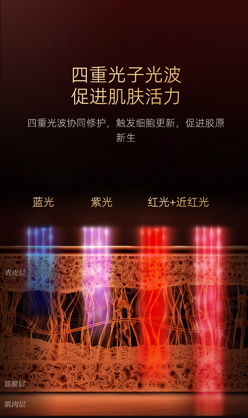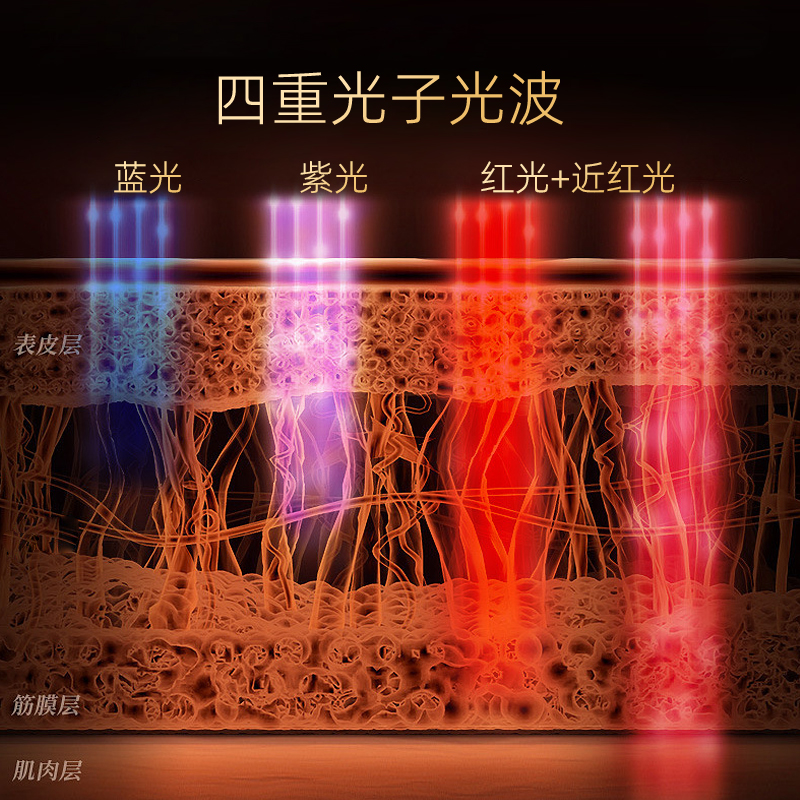 1、采用四重高能光子技术,融合红光、蓝光、紫光与红外光,多波段协同作用,全面修护肌肤屏障,唤醒肌肤活力。