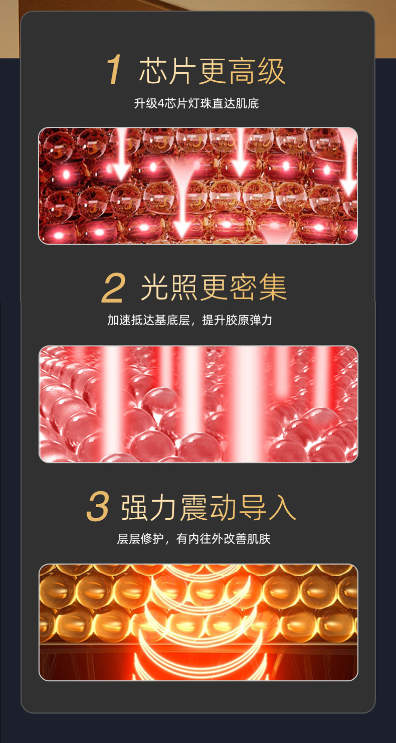 4、内置震动按摩系统,搭配穴位按摩功能设计,在光疗同时促进精华吸收,使护理效果更加显著。
