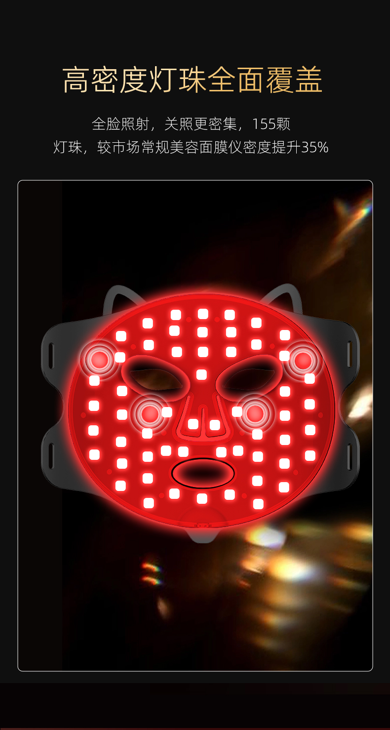 2、高密度LED灯珠均匀排布,实现大面积光照覆盖,光能稳定渗透至肌肤层,提升光疗护理效果。