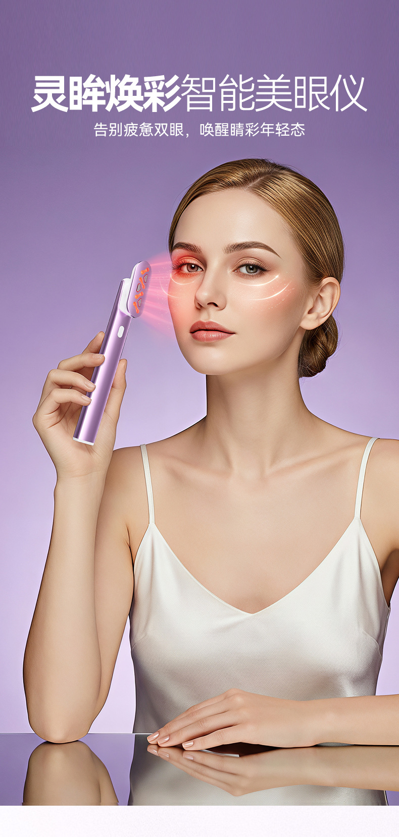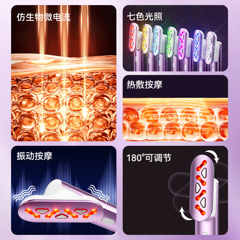 1、七色彩光系统,满足眼周肌肤的日常护理需求。 2、支持180°角度调节设计,可根据不同脸型与使用习惯灵活调整,更贴合眼周轮廓。 3、采用仿生微电流技术,输出温和细腻,有助于提升眼周紧致感与肌肤活力。