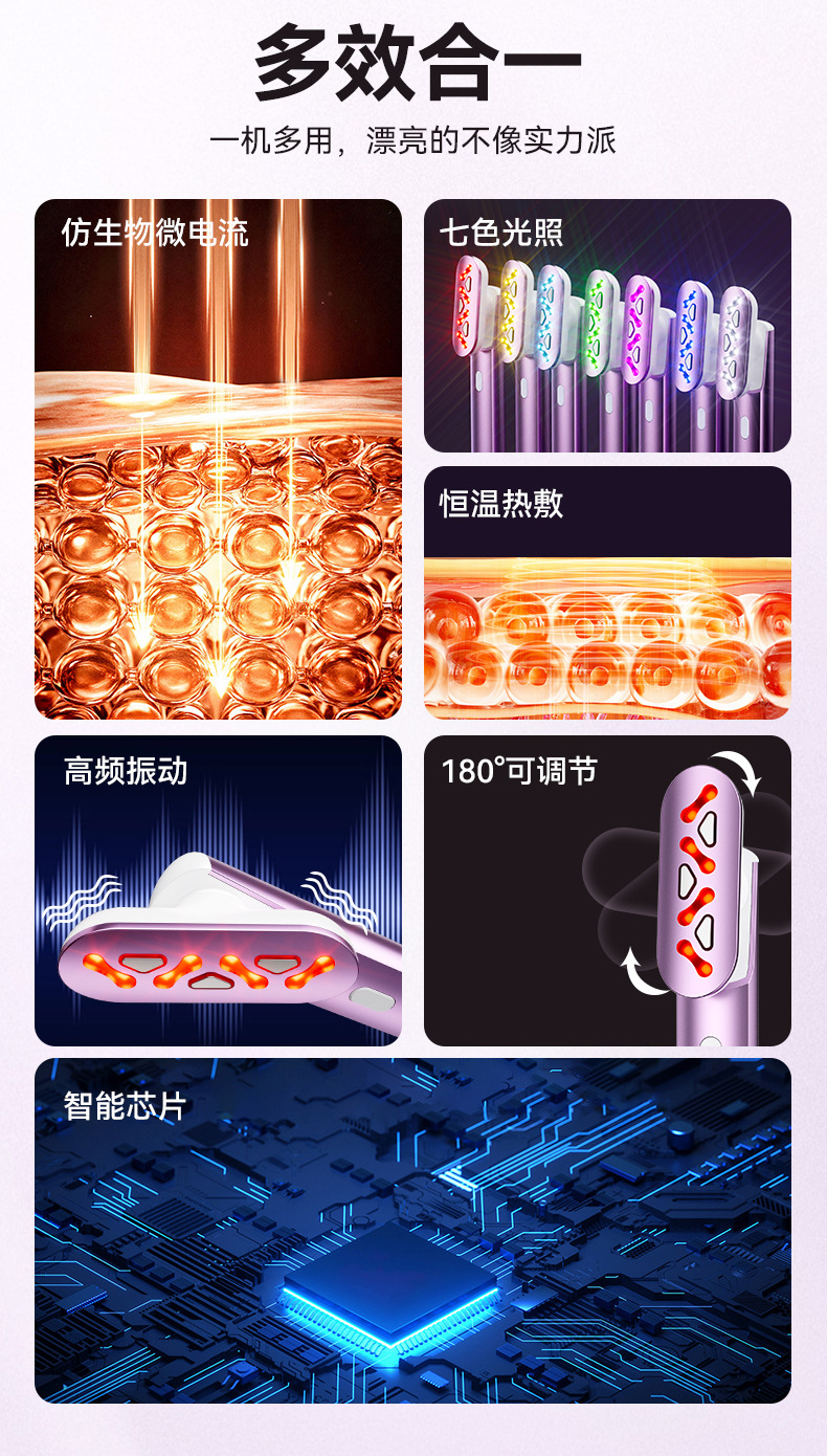7、多功能合一设计,将光疗、按摩与导入结合,提升整体护理效率。