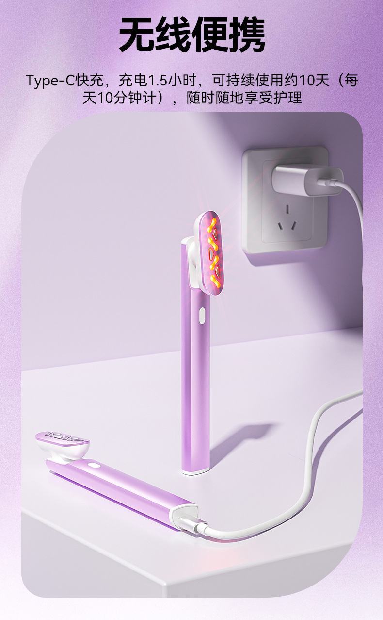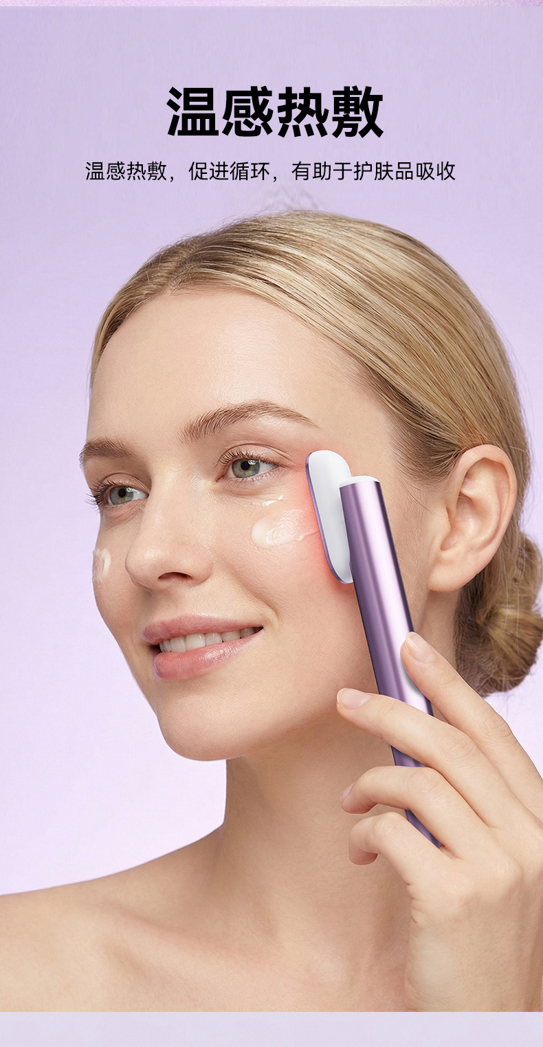 1、内置恒温加热功能,温感柔和稳定。 2、结合微电流提拉功能,通过温和电流刺激肌肤表层,帮助提升颈部紧致感与轮廓线条。 3、支持精华导入功能。