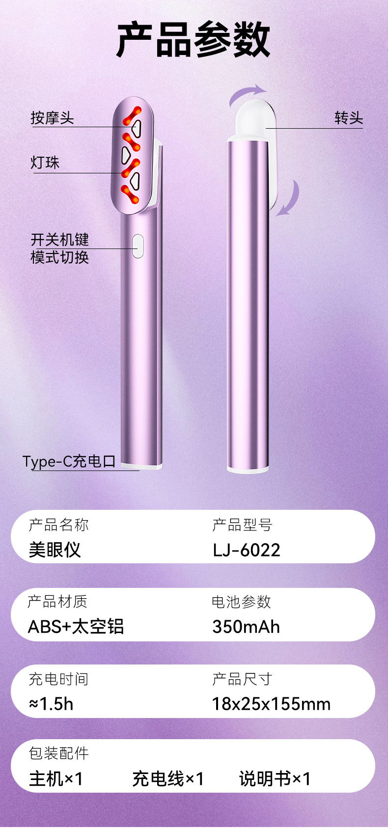 5、支持180°角度调节设计,可根据不同脸型与使用习惯灵活调整,更贴合眼周轮廓。