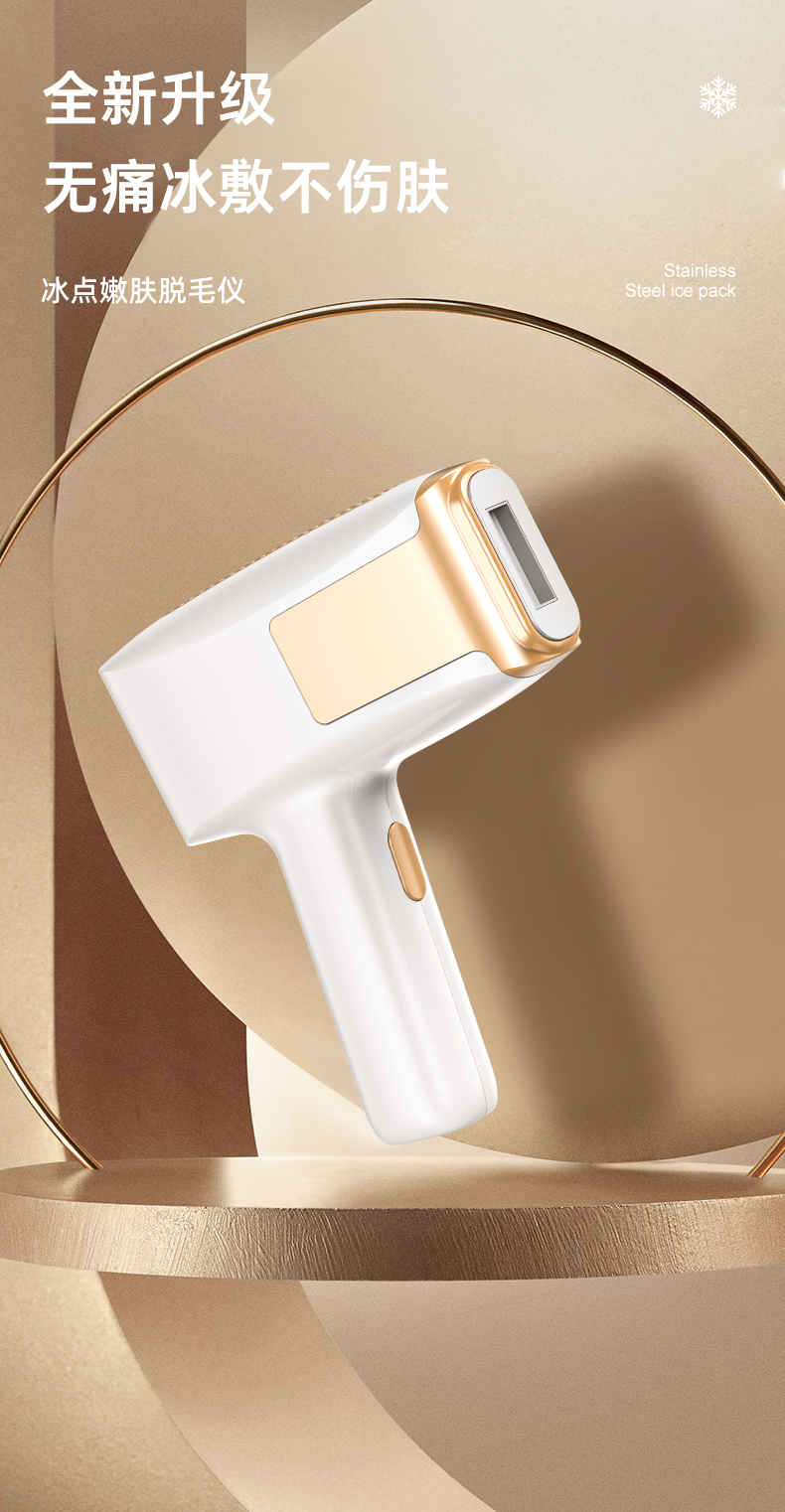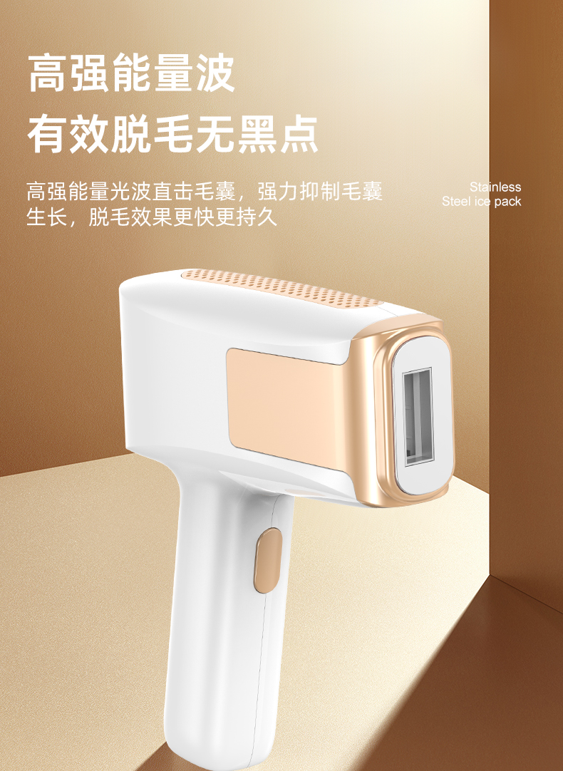 1、采用IPL强脉冲光脱毛技术,通过定向光能作用于毛囊根部,帮助抑制毛发生长,实现更稳定持久的脱毛效果。 2、搭配两款可更换照射头设计,可根据不同部位选择合适窗口,提升贴合度与操作精准性。 3、五档能量强度可调系统,支持从低能量逐步递增。