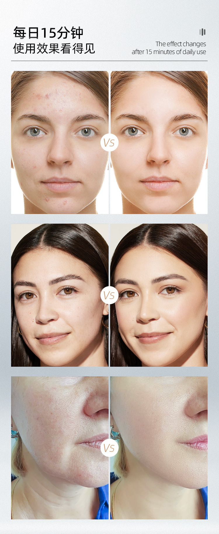 6、三挡能量强度可调,可根据肤质与护理阶段灵活切换,使用更加安全舒适。
