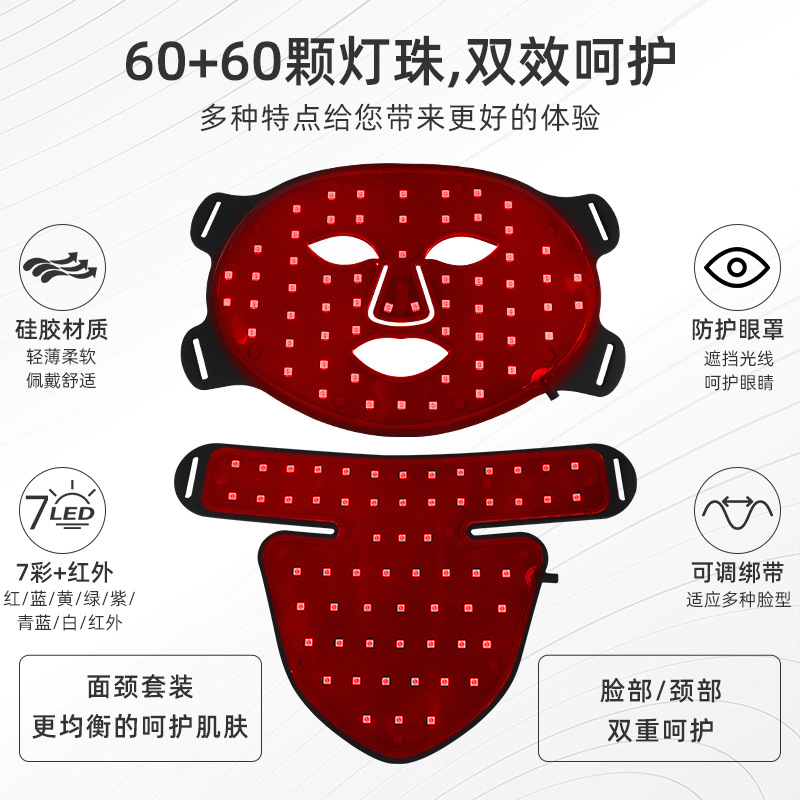 2、内置60颗面部LED灯珠与60颗颈部LED灯珠,均匀排列,光能覆盖更广,照射更细致。