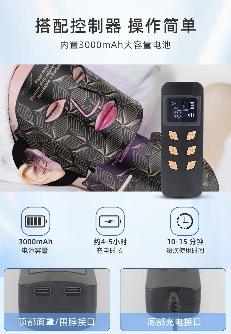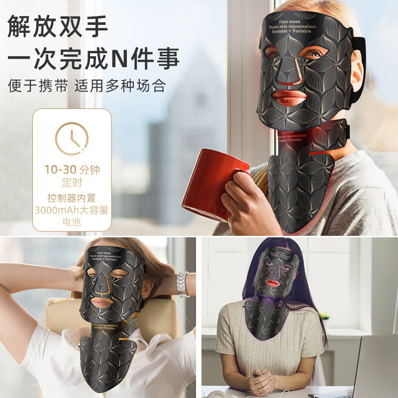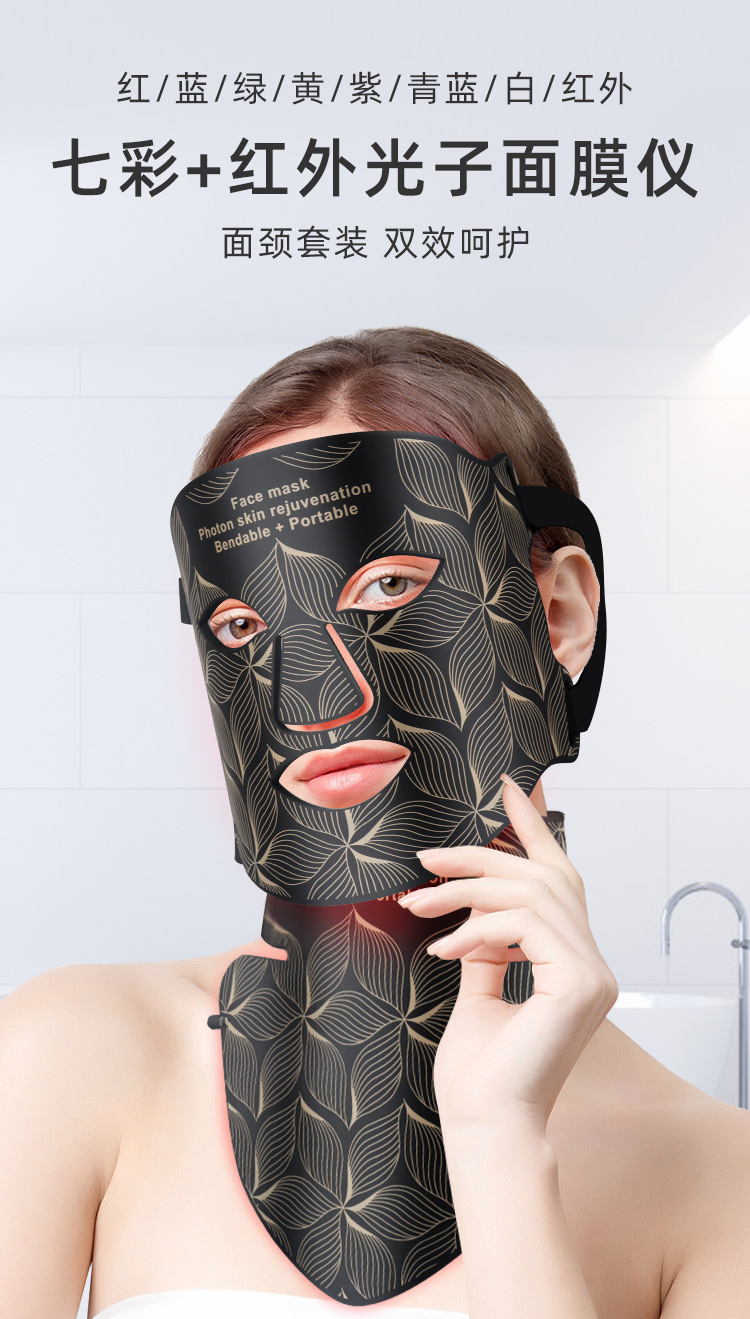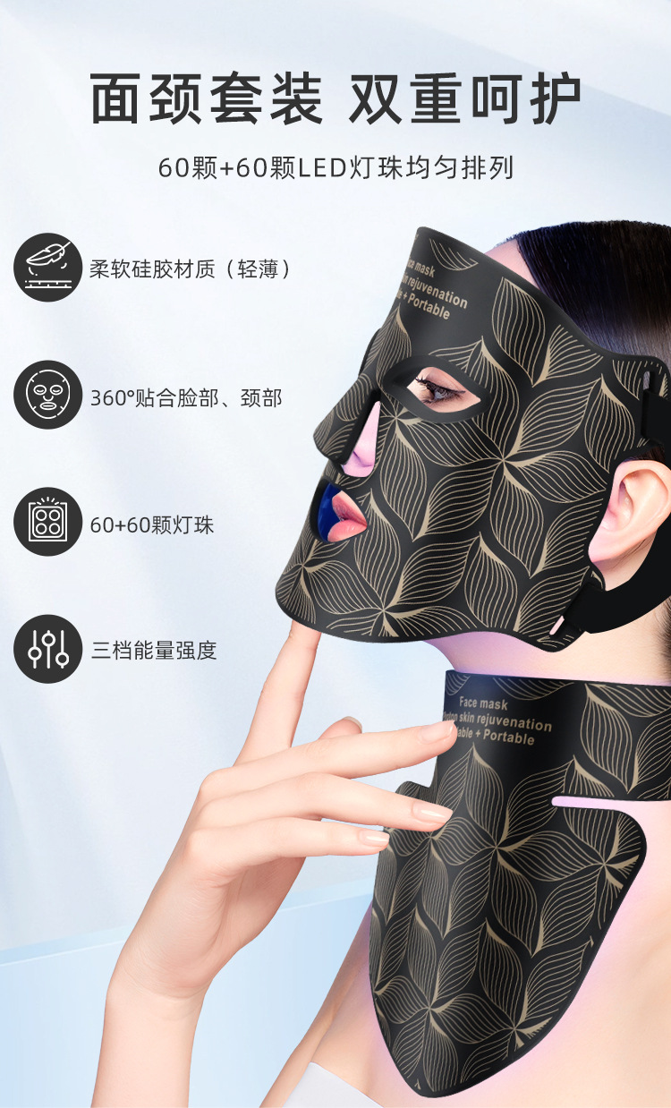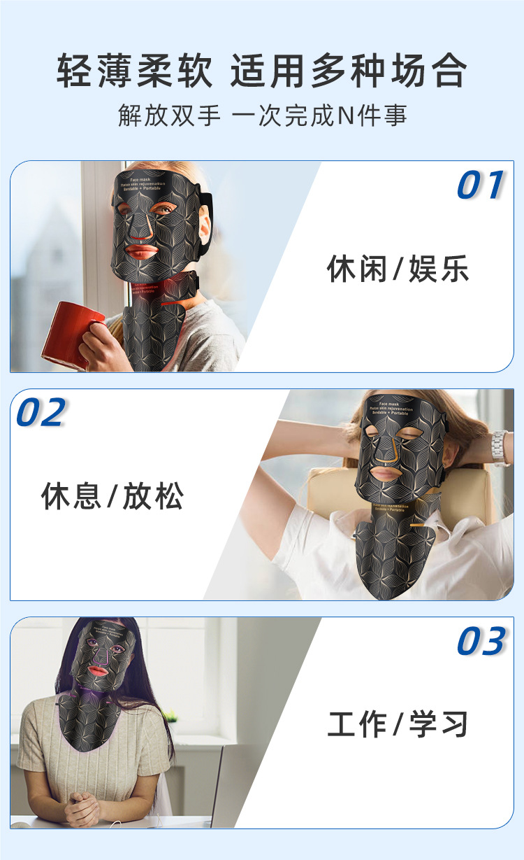 5、柔软硅胶材质设计,贴合面部与颈部轮廓,佩戴舒适不压肤,光能传导更高效。