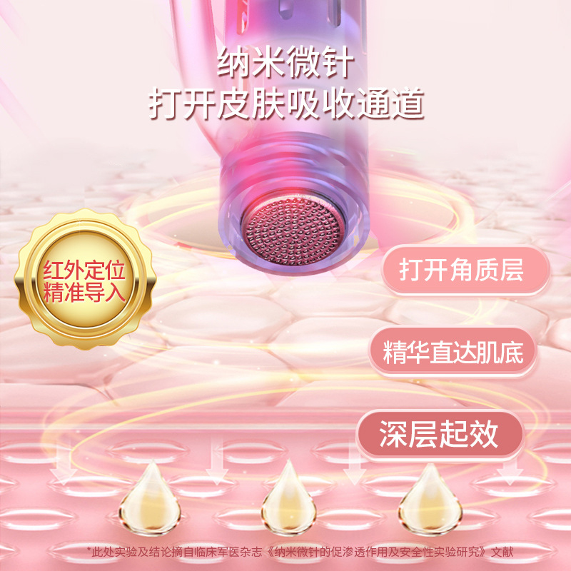1、搭载纳米级电动微晶技术,通过高频稳定输出,实现精准均匀点刺,帮助高效开启肌肤吸收通道。