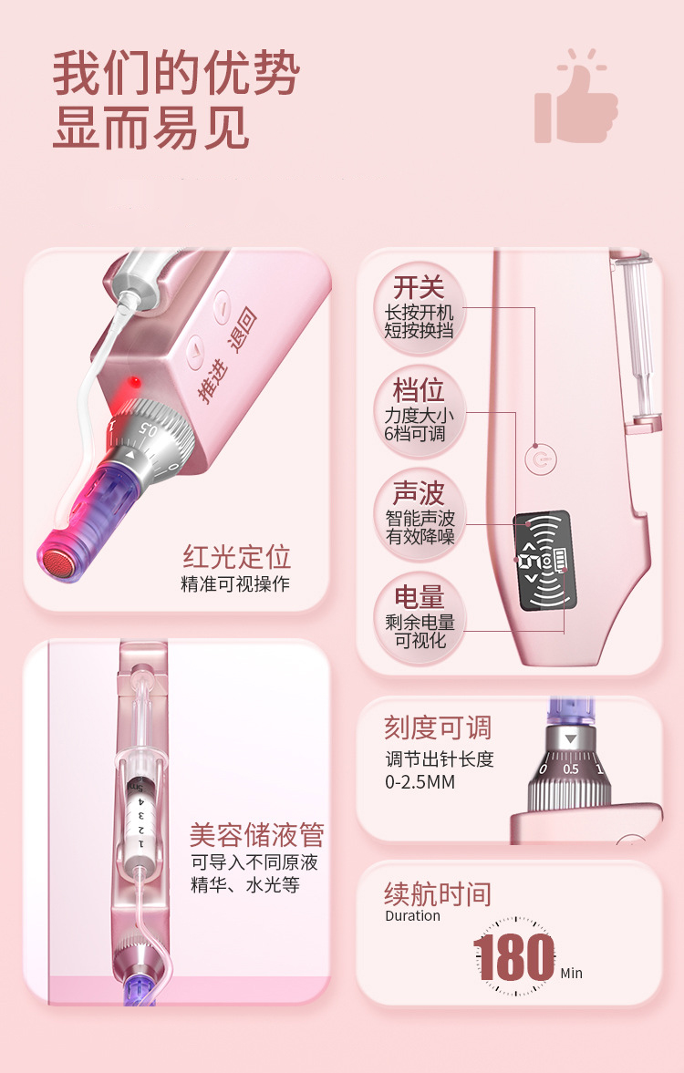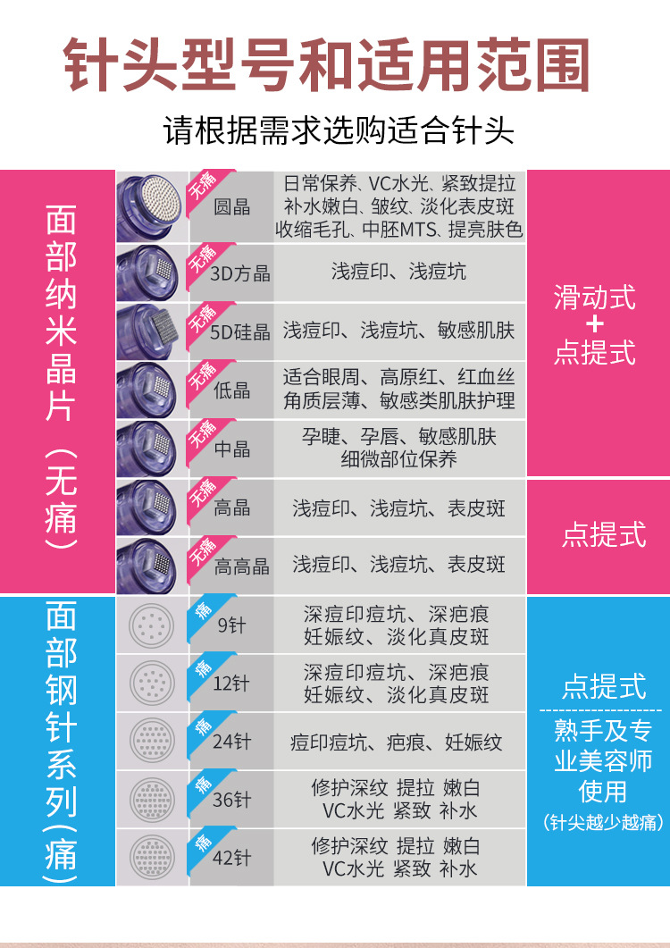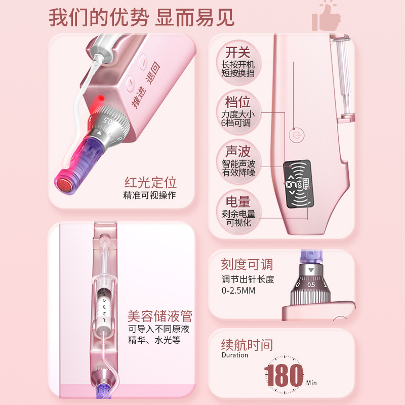 5、支持刻度式出针深度调节设计,可根据不同部位和肤质灵活控制针深,满足多层次护理需求。