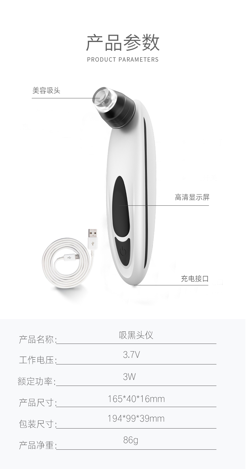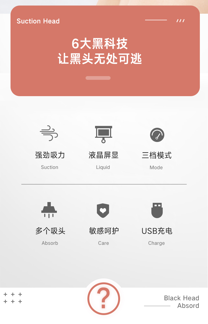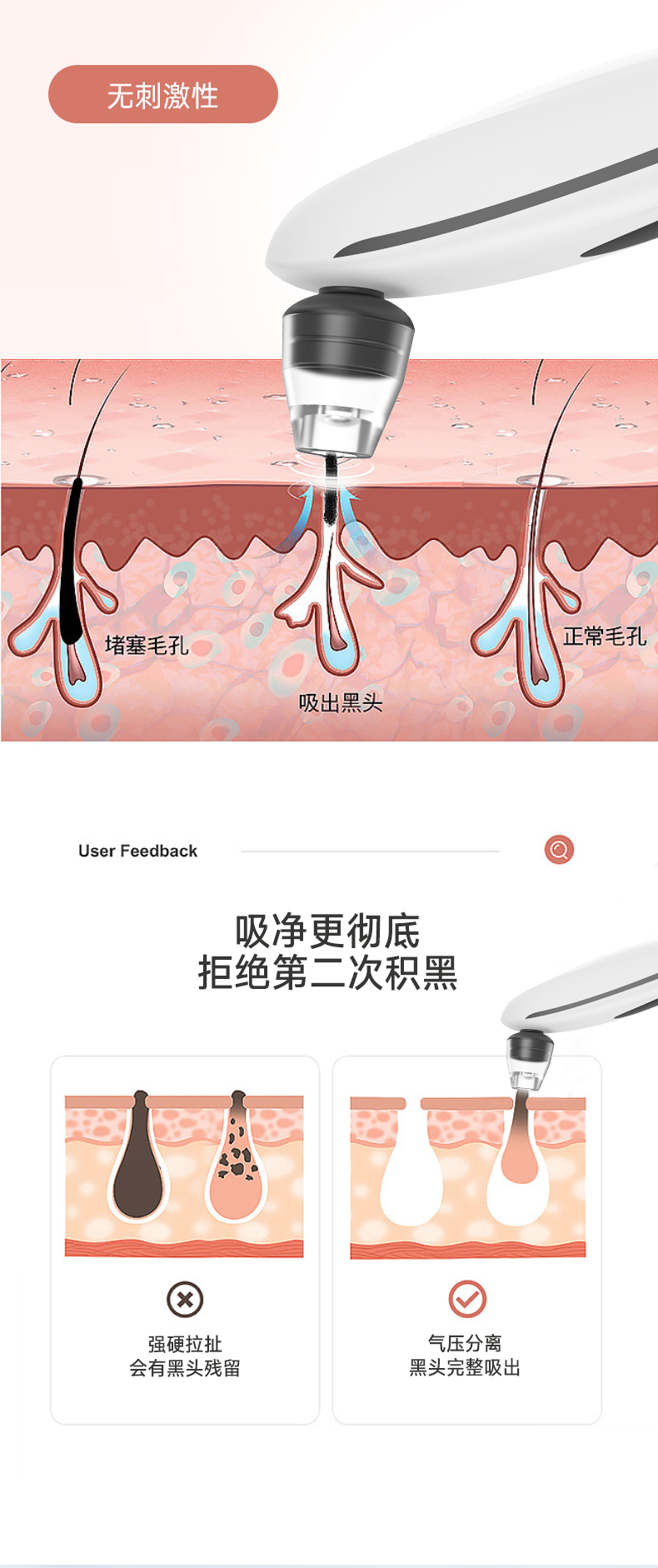 4、强劲电机动力系统,吸力稳定持久,帮助黑头与粉刺高效清除,减少反复清洁困扰。