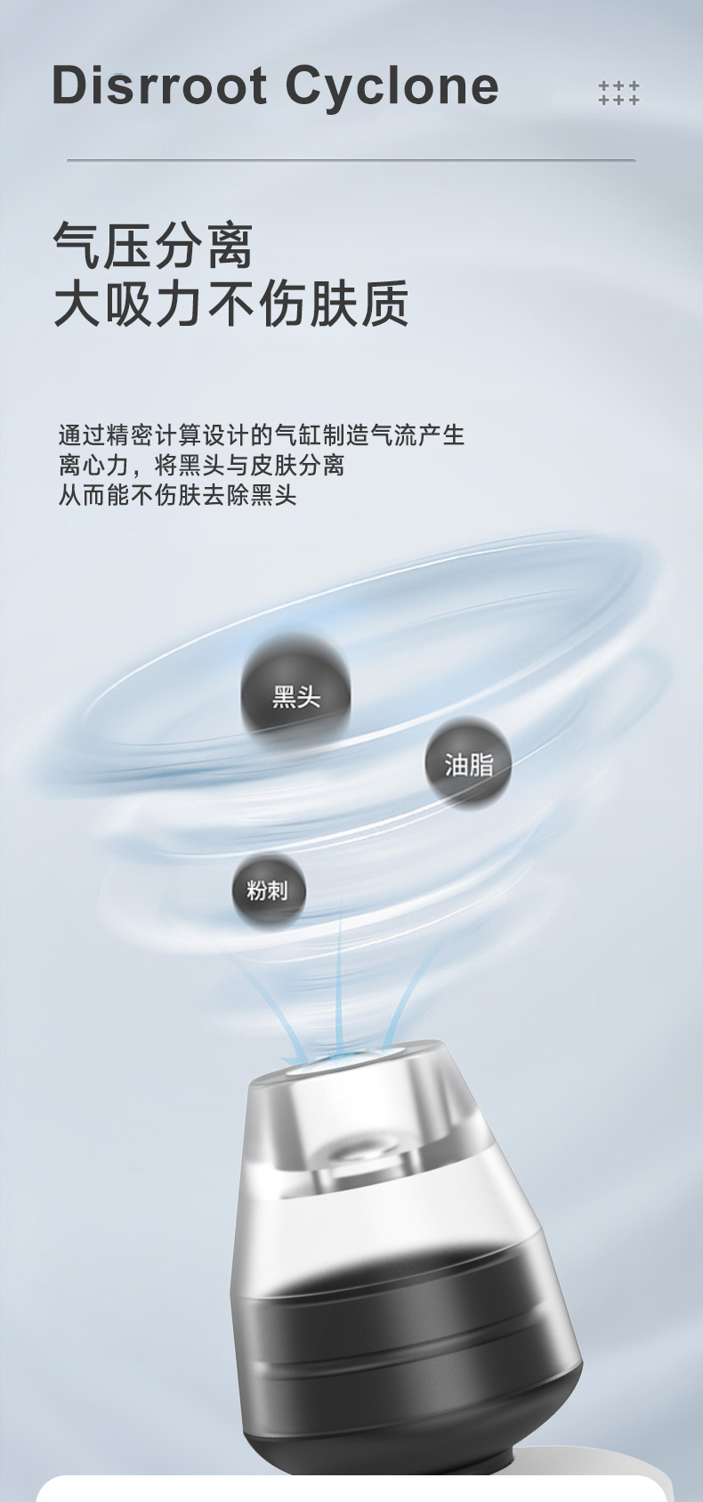 1、气压分离式结构设计,在保持强劲吸力的同时避免过度拉扯肌肤,实现深层清洁与温和护理并存。