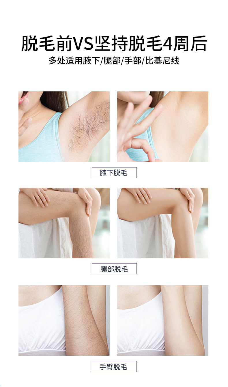 9、适用于腋下、腿部、手臂、比基尼线等多部位区域,实现全身脱毛管理。