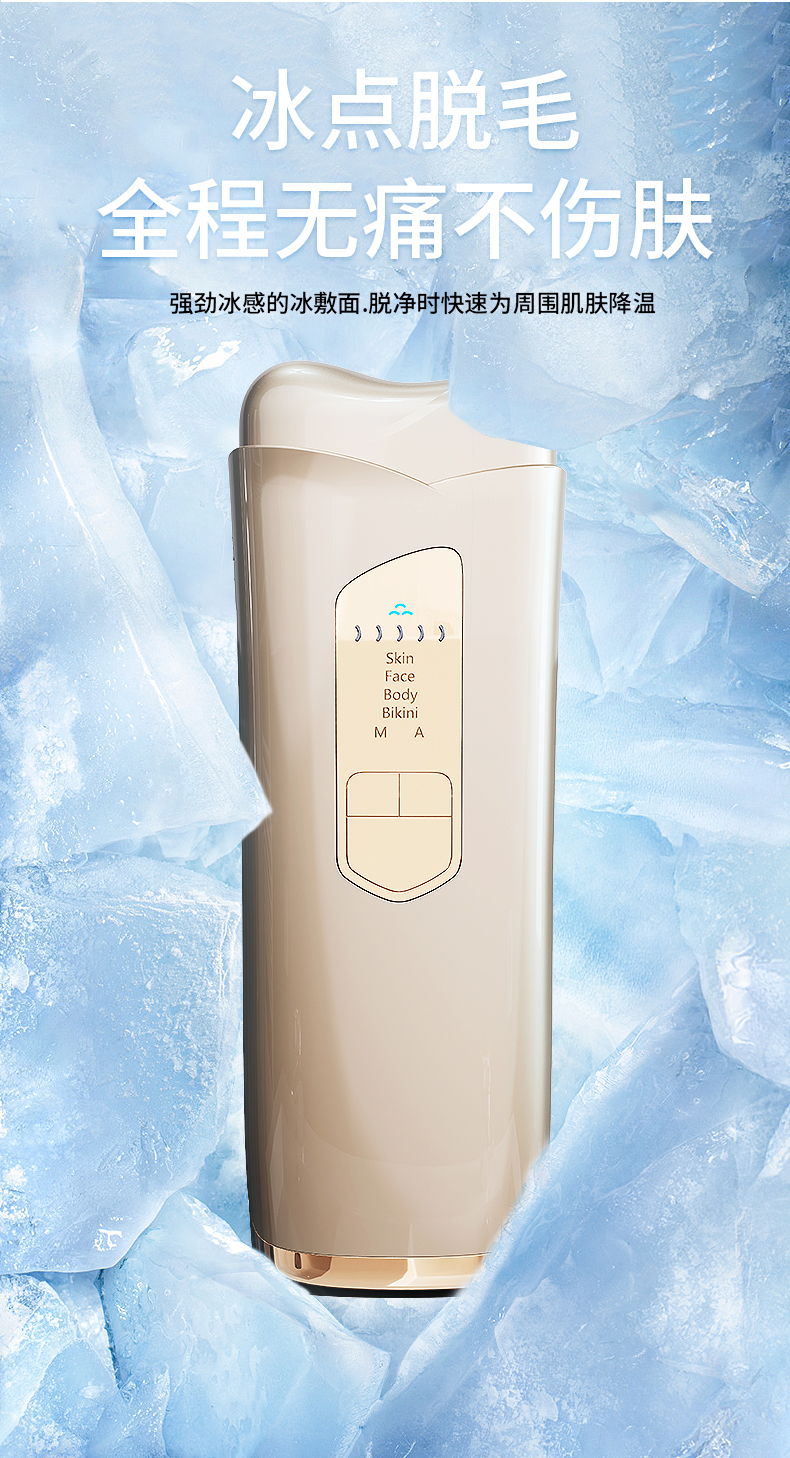 3、冰脱同步工作模式,光能输出与冷却系统同时启动,实现无痛感脱毛体验。