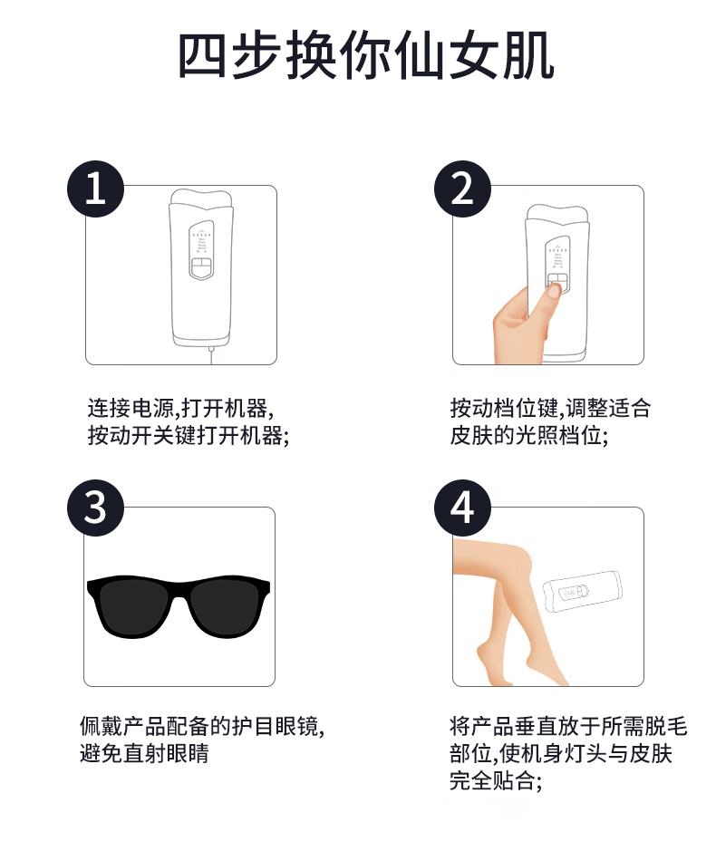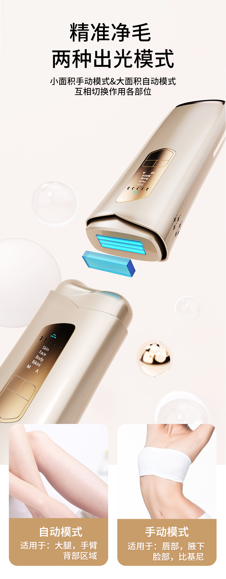 8、光能输出稳定均匀,脱毛过程中不易产生明显刺激感。