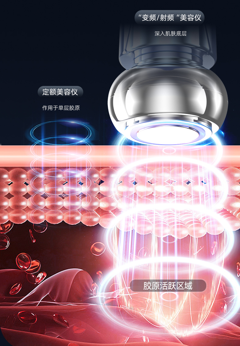 3、变频射频立体输出技术,使能量均匀深入作用于肌肤层面,帮助改善松弛与细纹问题。