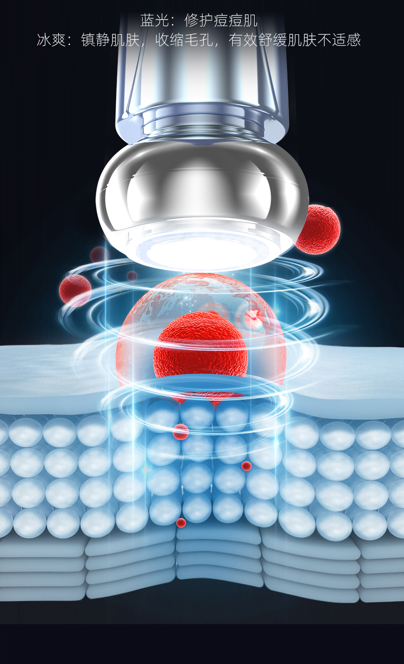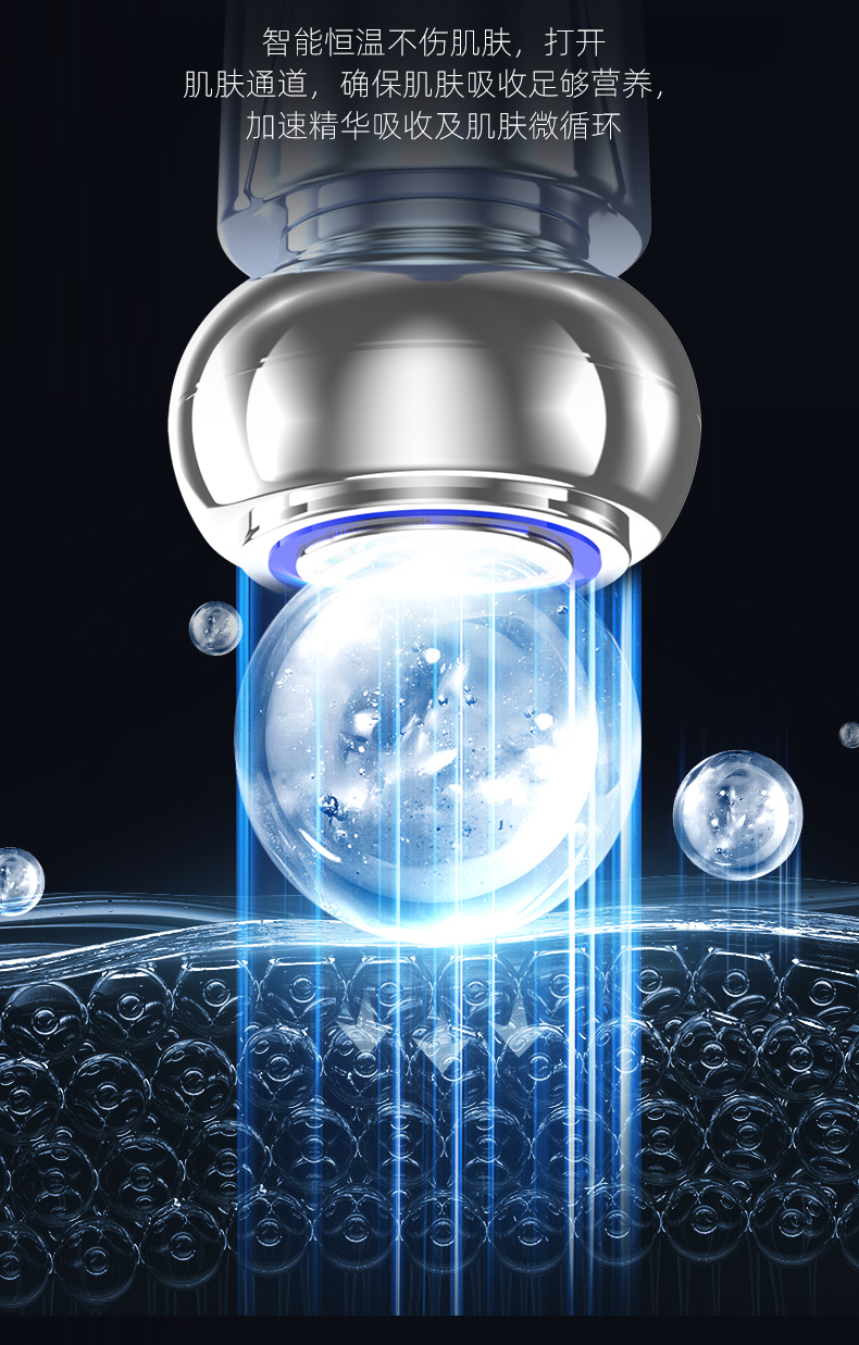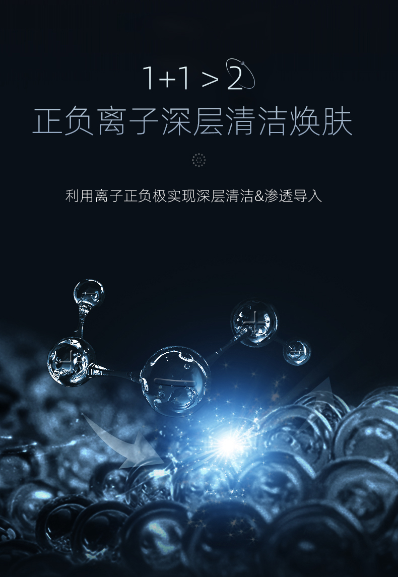 6、正负离子双模式切换,通过离子导出与导入技术,实现深层清洁与护肤成分吸收同步进行。